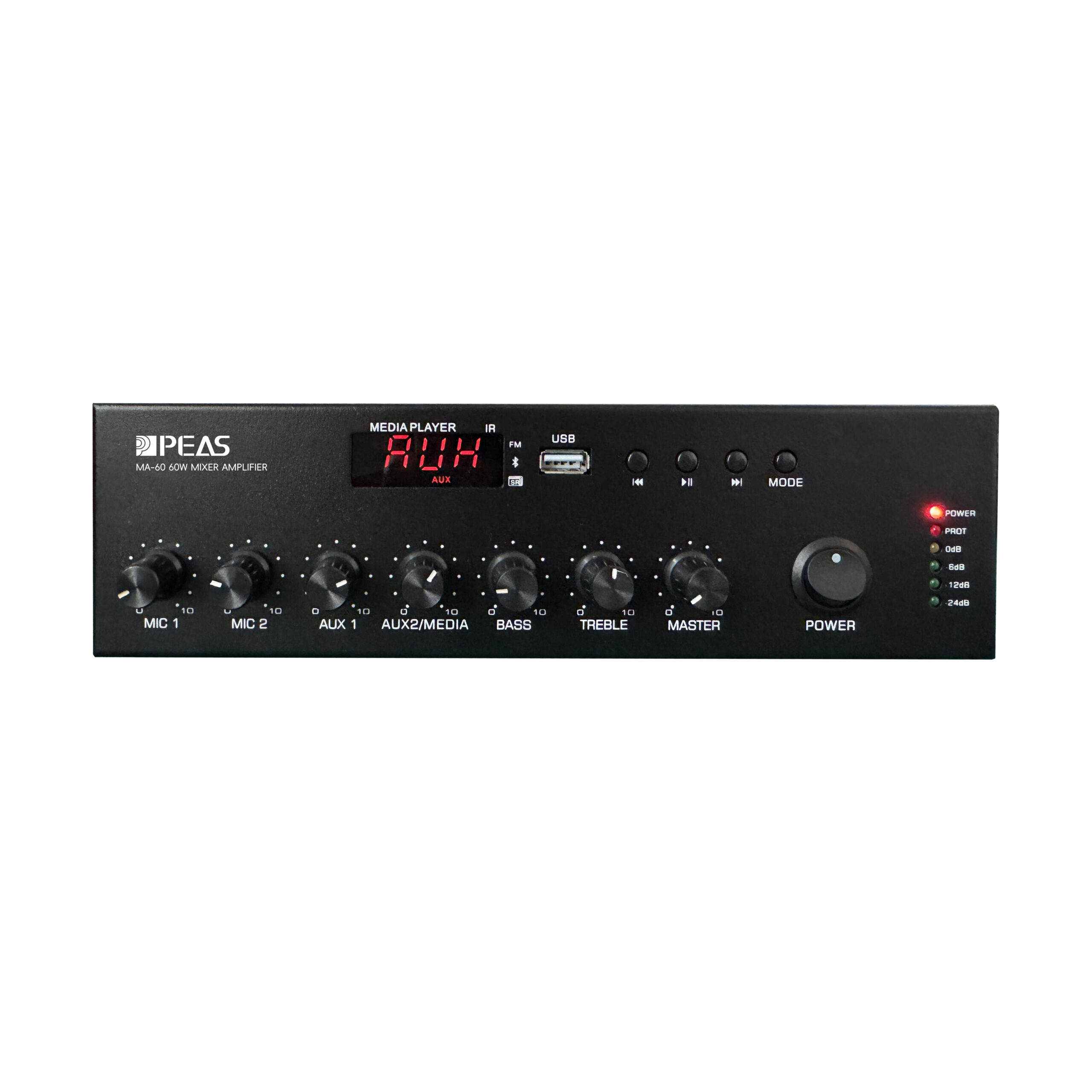 - 2 AUX input, bass and treble adjustment, master control